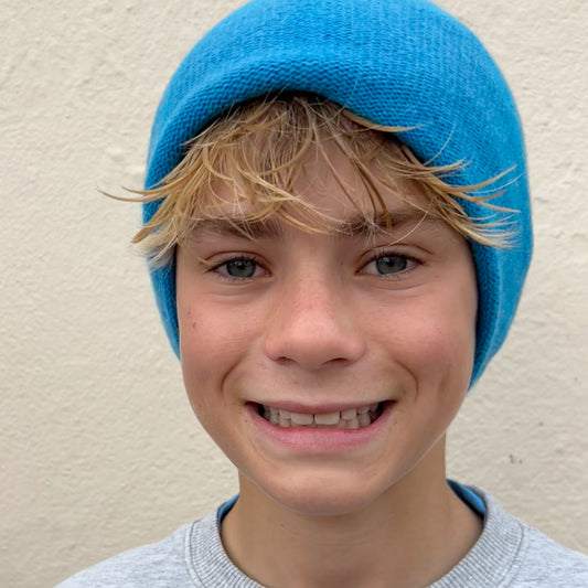 Cashmere Beanie Hat - Cyan Blue