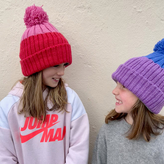Woollen Bobble Hat - Poppy Red & Pink